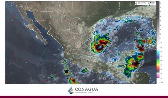 Para este sábado, se pronostican lluvias puntuales intensas (de 75 a 150 milímetros [mm]) en Chiapas, Guerrero, Oaxaca, Puebla, Tamaulipas y Veracruz; muy fuertes (de 50 a 75 mm) en Campeche, Michoacán, Quintana Roo, Tabasco y Yucatán; fuertes (de 25 a 50 mm) en Coahuila, Colima, Estado de México, Hidalgo, Jalisco, Morelos, Nuevo León, San Luis Potosí y Tlaxcala; intervalos de chubascos (de 5 a 25 mm) en la Ciudad de México, Nayarit y Querétaro, y lluvias aisladas (de 0.1 a 5 mm) en Aguascalientes, Guanajuato y Zacatecas.