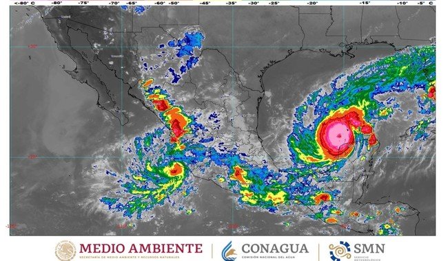 Su amplia circulación mantendrá el pronóstico de lluvias puntuales torrenciales (de 150 a 250 milímetros [mm]) en Campeche, el norte de Quintana Roo y Yucatán, intensas (de 75 a 150 mm) en Tabasco y Veracruz; así como rachas de viento de 180 a 200 km/h, oleaje de 6 a 8 metros (m) de altura y posible formación de trombas marinas en las costas norte de Campeche, el norte de Quintana Roo y Yucatán; rachas de 100 a 120 km/h y oleaje de 4 a 6 m de altura en las costas de Veracruz y Tabasco; y de 80 a 100 km/h con oleaje de 3 a 5 m de altura en las costas de Tamaulipas. Asimismo, se prevé marea de tormenta de 1 a 3 metros sobre Campeche, el norte de Quintana Roo y Yucatán.