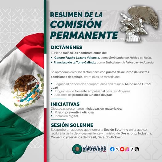 Camara de DiputadosInfografías ¿Se te olvidó que hoy había sesión de la #ComisiónPermanente? No te preocupes. Aquí te traemos el resumen de lo que pasó. ¡Síguenos para estar bien informado del acontecer legislativo! Por Araceli Bastida - agosto 20, 2025 0 FacebookTwitterPinterestLinkedinReddItEmailWhatsAppTelegramVK