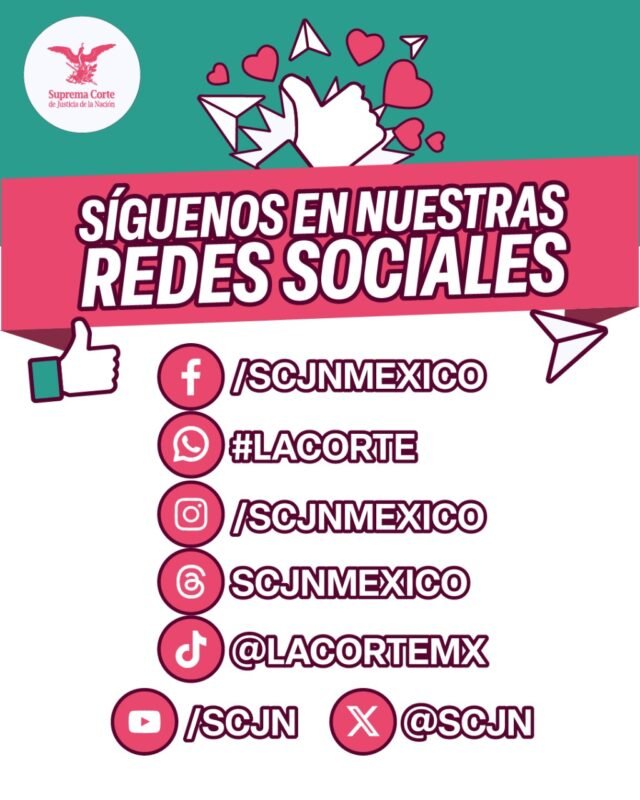 Si deseas conocer información oficial sobre #LaCorte y acceder a contenido jurídico, te invitamos a seguirnos en nuestras redes sociales.