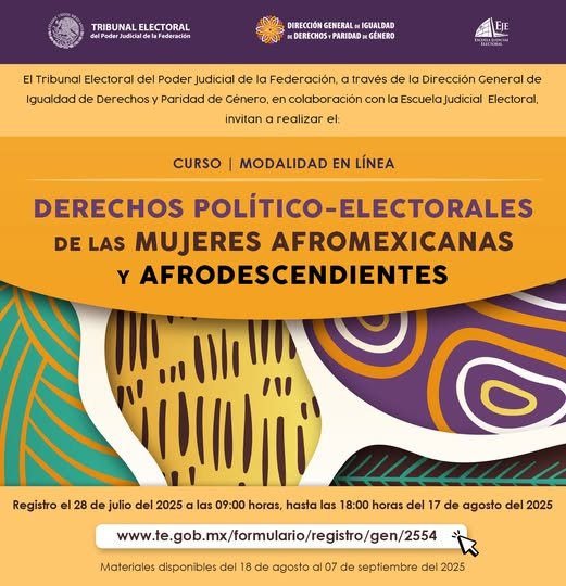 Te invitamos a participar en el “Curso: Derechos político-electorales de las mujeres afromexicanas y afrodescendientes”, modalidad en línea.