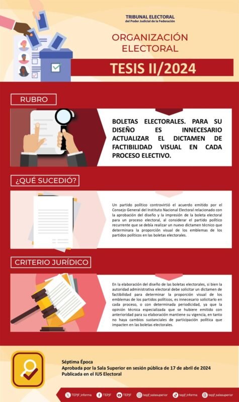 Inicio Tribunal Electoral del Poder Judicial de la Federación Infografías Tesis II/2024 Rubro: Boletas electorales. Para su diseño es innecesario actualizar el...