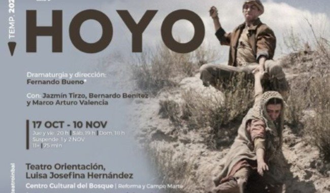 La Secretaría de Cultura del Gobierno de México y el Instituto Nacional de Bellas Artes y Literatura (Inbal), a través de la Coordinación Nacional de Teatro, y Taller de Exploración y Sensibilización Creativa y B. Teatro presentan la puesta en escena El hoyo, con dramaturgia y dirección de Fernando Bueno.
