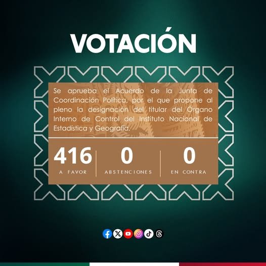 #ÚLTIMAHORA | El Pleno aprobó el acuerdo por el que se designa a Ángel José Trinidad Zaldívar como titular del Órgano Interno de Control del Instituto Nacional de Estadística y Geografía, INEGI Informa.