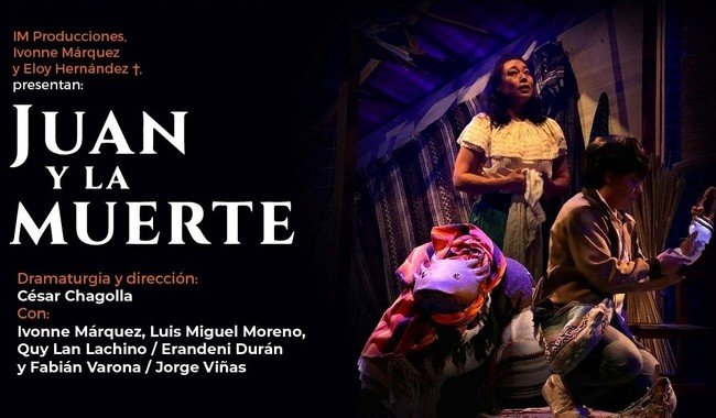 La Secretaría de Cultura federal y el Instituto Nacional de Bellas Artes y Literatura (Inbal), a través del Programa de teatro para niñas, niños y jóvenes de la Coordinación Nacional de Teatro, IM Producciones, Ivonne Márquez y Eloy Hernández †, presentan la puesta en escena Juan y la muerte, con dramaturgia y dirección de César Chagolla e interpretaciones a cargo de Ivonne Márquez, Luis Miguel Moreno, Quy Lan Lachino / Erandeni Durán y Fabián Varona / Jorge Viñas.