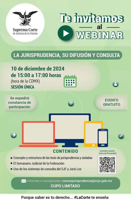 Suprema Corte de Justicia de la NaciónInfografías Ya te puedes registrar a la sesión Webinar La Jurisprudencia su difusión y consulta del 10 de diciembre Por Araceli Bastida - noviembre 29, 2024 0 FacebookTwitterPinterestLinkedinReddItEmailWhatsAppTelegramVK